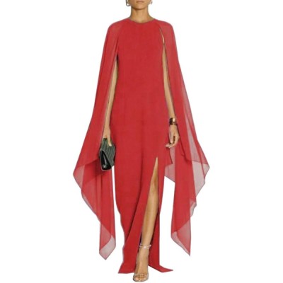 Women's Elegant High Split Flare Sleeve Formal Evening Gowns Maxi Dress with Cape