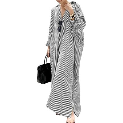 Womens Striped Long Sleeve Dress Casual Loose Button Down Cotton Maxi Shirt Dress