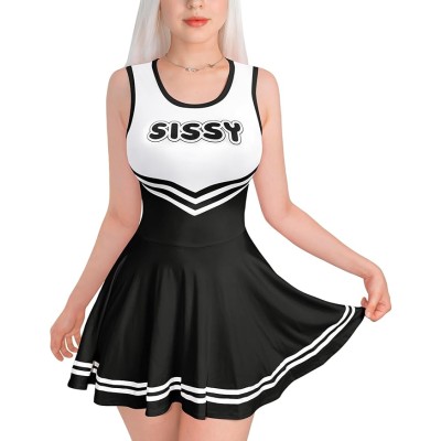 Women Sleeveless Overall Cheer Sissy Bodycon Mini Dress Skirt