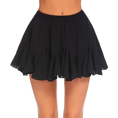 Basic Casual High Waisted Ruffles Flared Mini Lingerie Skirts
