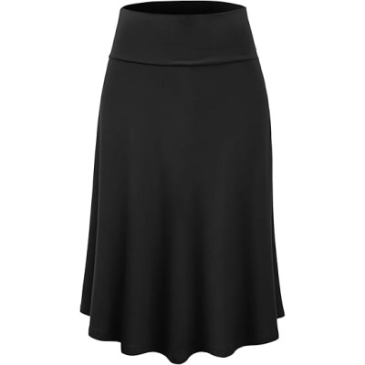 Women's Solid Lightweight Flare Midi Pull On Closure Skirt