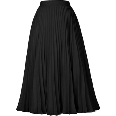 Women's Pleated Skirt Chiffon Elastic Waist A-Line Midi Length Skirt