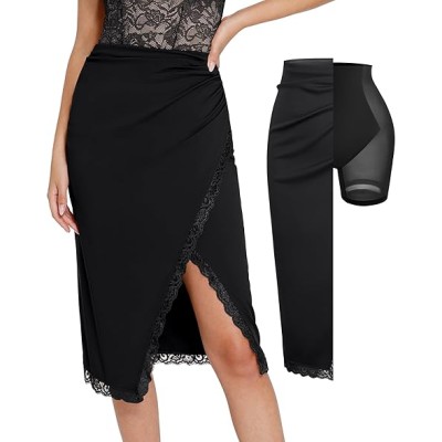 Lace Shapewear Split Satin High Waisted Bodycon Long Skirt