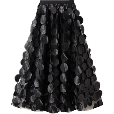 3D Polka Dot Elastic Waist Mesh Flowy A-Line Midi Skirts Wedding Halloween Party Outfit