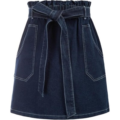 Casual High Waist A Line Skirt Denim Skirt Elastic Waist Jean Short Skirt with Pockets