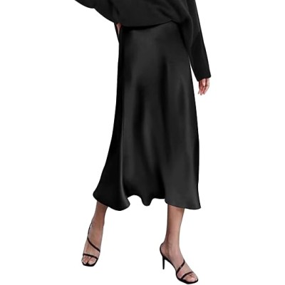 High Waisted Solid Satin Dress Zipper Elegant Work Skirts