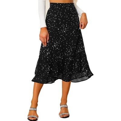 Printed Skirt Chiffon Elastic Waist Ruffle Tiered Flowy Midi Skirts