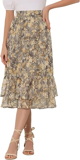 Versatile floral skirt for daily casual style,or eye-catching piece as a midi skirt.